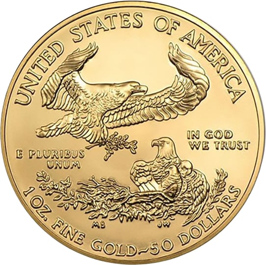 Die Vorderseite der vorliegenden American Eagle Reihe weist eine wahre Naturidylle auf. Zu sehen sind ein Weißkopfadler sitzen in seinem Nest. Von oben links kommt ein weiterer Adler mit Zweigen in den Fängen. Unter dem heranfliegenden Adler steht „E PLURIBUS UNUM“ und rechts über den im Nest sitzenden Adler „IN GOD WE TRUST“. Oberhalb des Motivs ist der Schriftzug „UNITED STATES OF AMERICA“ zu finden. Unter dem Nest stehen weitere Details zur Goldmünze in Form von „1OZ. FINE GOLD ~ 50 DOLLARS“. Die Rückseite beherbergt die stolz anmutende Lady Liberty. In ihrer Hand hält die ikonische Freiheitsfigur eine Fackel und einen Olivenzweig, der für den Frieden steht. Rechts von ihr findet sich das Prägejahr.