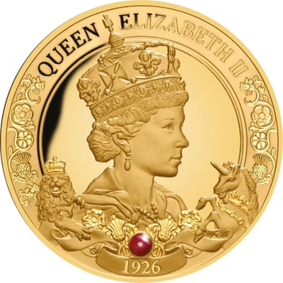 1 Unze Gold 95. Geburtstag Queen Elisabeth II. 2021 PP (Auflage: 150| Polierte Platte | mit echtem Rubin)
