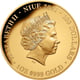 Auf der Münze sehen wir die junge Elisabeth II. wie Sie die stolz die Krone trägt. Die Vordersite wurde mit einigen floaren Elementen verziehrt, sowie mit einigen Wappentieren. Zwischen den Wappentieren ist ein Rubin in die Münze eingearbeitet, welcher der Münze einen ganz besonderen Charme verleiht.