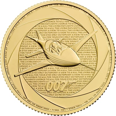 - Motiv: Die Münze zeigt den legendären BD-5J 'Acrostar' Microjet aus dem Film "Octopussy" in einer beeindruckenden, detailreichen Prägung. Der Hintergrund ist kunstvoll mit Filmtiteln der 80er Jahre gestaltet.