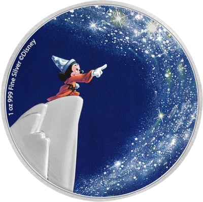 Disney Magie pur: Detailreiche 1 Unze Silbermünze mit dem ikonischen Zauberlehrling, perfekt für Sammler