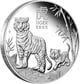Das 3 Münzen Silber Set Lunar III Tiger 2022 ist aus feinstem Silber gefertigt und besticht durch sein eindrucksvolles Motiv des Tigers, das dritte Zeichen des zwölfjährigen Mondkalenders. Jede Münze dieses Sets ist ein Kunstwerk für sich, mit einem Tigerjungen, das seinem stolzen und schützenden Elternteil über ein felsiges Gelände mit Farnen und Bambus folgt. Das Motiv ist mit dem chinesischen Schriftzeichen für "Tiger", der Aufschrift "TIGER 2022" und dem Prägezeichen "P" der Perth Mint verziert.