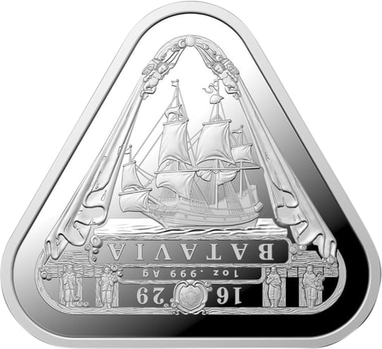Die 1 Unze Silber Batavia ist die erste dreieckige Anlagemünze der Welt. Sie ist das Erste von 4 Motiven dieser Serie und widmet sich einem der berüchtigsten und bekanntesten Schiffswracks von Australien. Die Batavia war ein Segelschiff der Niederländischen Ostindien-Kompanie. Es lief 1629 auf seiner ersten Reise vor Australien auf ein Riff und sank. Unter den Überlebenden des Schiffbruches kam es zu Meuterei und Massakern. Auf der Münzrückseite ist die Batavia in voller Pracht auf hoher See abgebildet. Unter dem Schiff steht kopfüber 1629, das Gewicht, die Feinheit sowie der Schriftzug Batavia. Wenn man sich die Wertseite betrachtet sieht man im Vordergrund die überlebenden Piraten am Strand kämpfen, während im hintergrung die Batavia sinkt. Unter dem Zenario steht den Nennwert one Dollar, über dem Zenario thront das Portrait der Queen Elisabeth II.