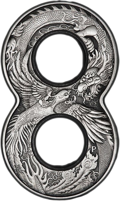 Symbolträchtiges Design: Die Münze vereint Drache und Phönix, kraftvolle Symbole des Glücks und der Reinheit in der chinesischen Kultur