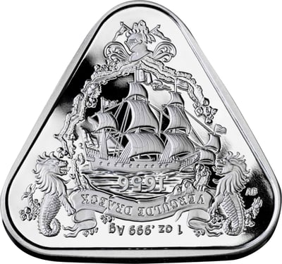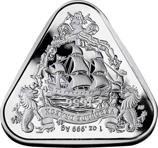 Nachdem der Versuch mit der ersten dreieckigen Münze ein großer Erfolg war wird dem zweiten Motiv eine ebenso große Zukunft vorhergesagt, vor allem weil der Weg geebnet wurde durch die Batavia Münze. Die zweite Münze der Serie widmet sich der “Vergulde Draeck – Vergoldeter Drache”, einem 42 Meter langem Dreimaster der niederländischen Ostindien-Kompanie. Das Schiff brach am 4. Oktober 1655 von Texel aus in See, das Ziel der Reise war Batavia, das heutige Jakarta. Am 28. April 1657 lief die Vergulde Draeck bei Ledge Point auf ein Riff auf und zerbrach. Von den 195 Mann starken Besatzung überlebte nur eine handvoll. Reste der wertvollen Ladung wurden erst in 1970er und 1980er Jahren geborgen und in Museen ausgestellt, jedoch wurde das Wrack bereits früher geplündert und stak beschädigt.