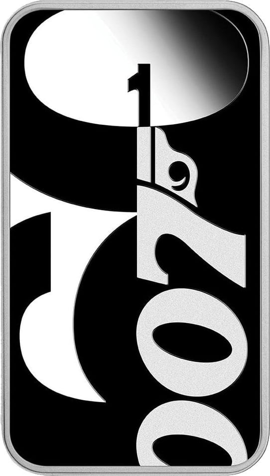 Der erste James Bond™ Film, nämlich Dr. No™, kam am 5. Oktober 1962 heraus. Es folgten ganze 26 weitere Filme. Mit dieser besonderen Silbermünze feiert der australische Hersteller Perth Mint das 60. Jubiläum der beliebten James Bond™ Filme. Das Besondere an dieser Münze ist ihre außergewöhnliche Form. Sie ist nämlich nicht rund, sondern rechteckig.