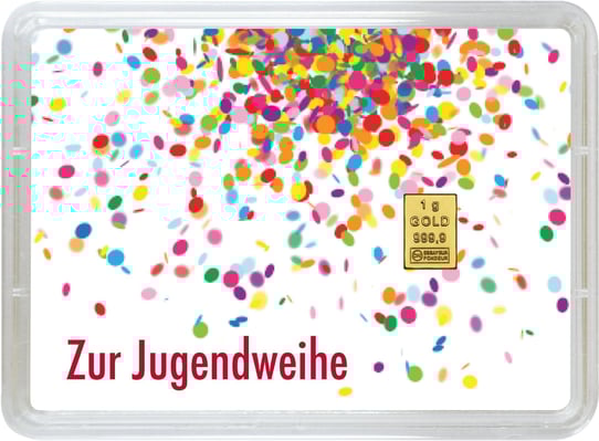 Indem Sie den 1g Goldbarren Glückwunsch zur Jugendweihe verschenken, geben Sie nicht nur ein wertvolles und schönes Geschenk, sondern auch eine Botschaft mit auf den Weg: Die Botschaft von Stabilität, Sicherheit und Beständigkeit. Sie zeigen dem Jugendlichen, dass Sie an seine Zukunft glauben und ihm etwas Wertvolles an die Hand geben möchten, das ihn ein Leben lang begleitet. Und wer weiß, vielleicht wecken Sie mit diesem Geschenk auch die Leidenschaft für Edelmetalle und das Sammeln von Goldbarren.